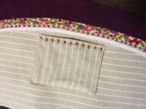 今日は午後から“ちょこっと仕事”だし、チビの帰宅時間が早い。 雨でじめじめ、気分も乗らず…。 なので、なんとなくミシンを掛ける気分にならず…。。 少ない時間で刺繍の続きをすることに。 この間からちまちまやってる、リバティ柄切り替え。 テレビを見なが…